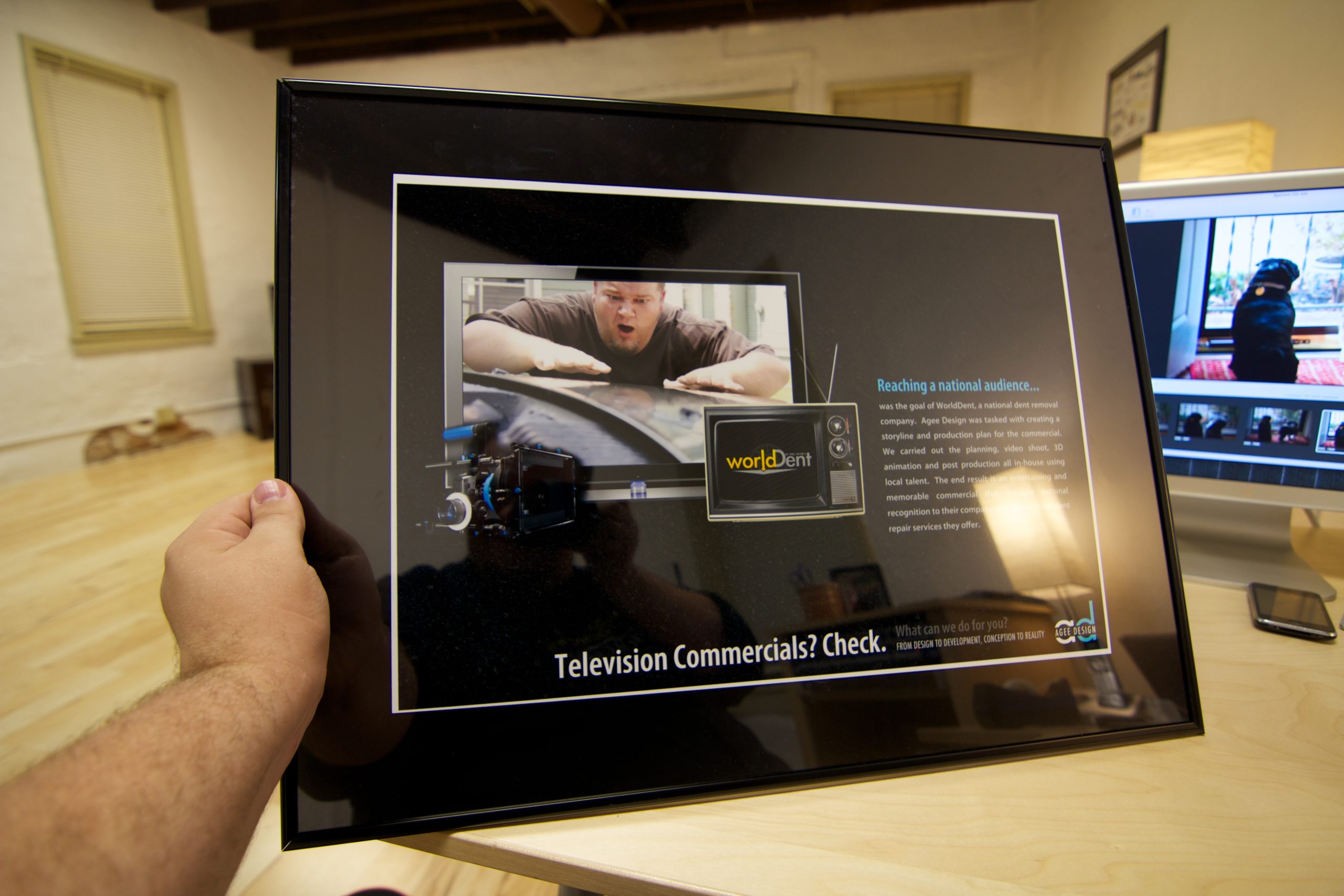 I’m in the process of creating some 13×19" posters for display around the office. I’m particularly happy with this one which showcases a television commercial we developed for WorldDent. www.worlddentrepair.com