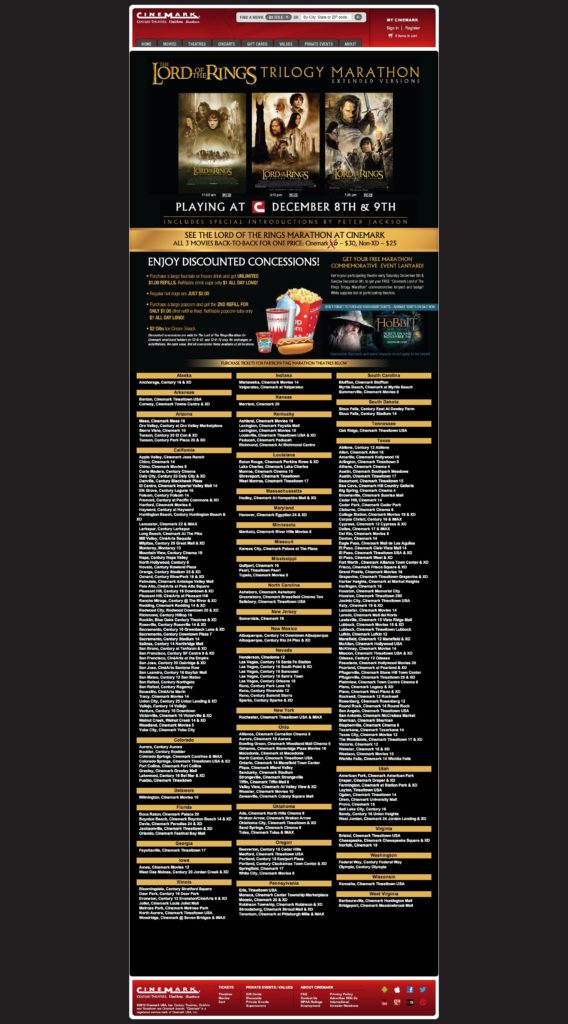 Cinemark – Cinemark Lord Of The Rings Trilogy Marathon