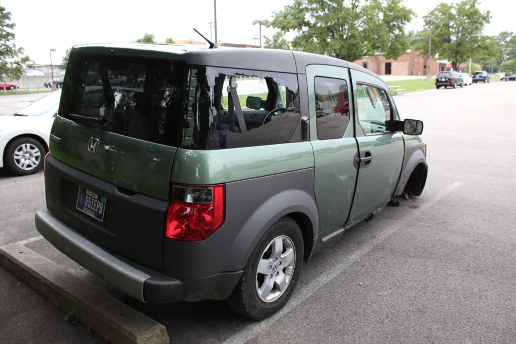 On day 1 of our 2010 Route 66 road trip we had an accident and totaled our beloved 2004 Honda Element. Here she lies for eternity.